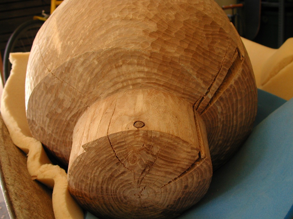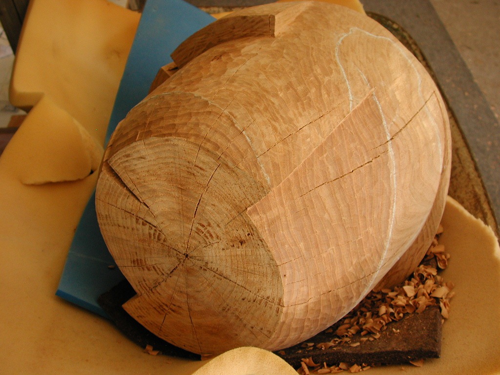This is an enjoyable stage where I feel the most like a real sculptor, working with a hammer and chisel, shirt off, summertime in the studio.