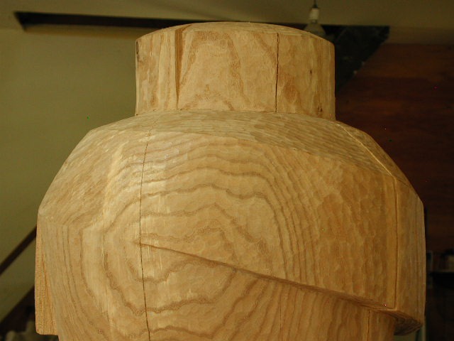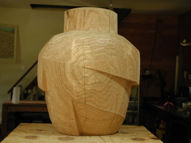 I’ve been holding onto this post for a long time, because of course, no sooner to than you want to declare that you’re done carving then you see some little details that you need to deal with. Finally I had to keep it under cover for about 3 weeks until I forgot exactly what it looked like, then I uncovered it could see it fresh. I was happily with what I saw. It’s a big raw thing, but I’m pleased with the amount of details verses the overall volume of the form. It seems balanced and even, and I’ve settled on it.