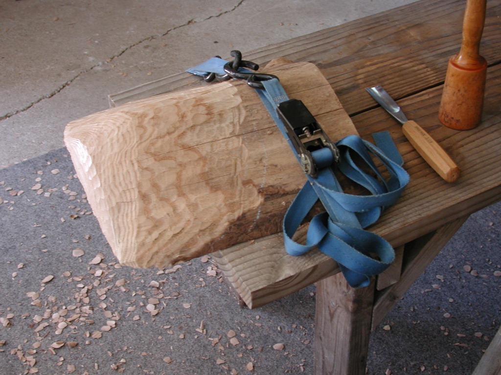 All that realized, I decided to use Arm-R-Seal Wipe-On Oil Varnish, available at Woodcraft. Garry said he’s had good results with it, and it was easy to control by wiping on, or off, with cloths. I set about carving up a test piece which would have samples of the different grain faces which are to be found in the sculpture.