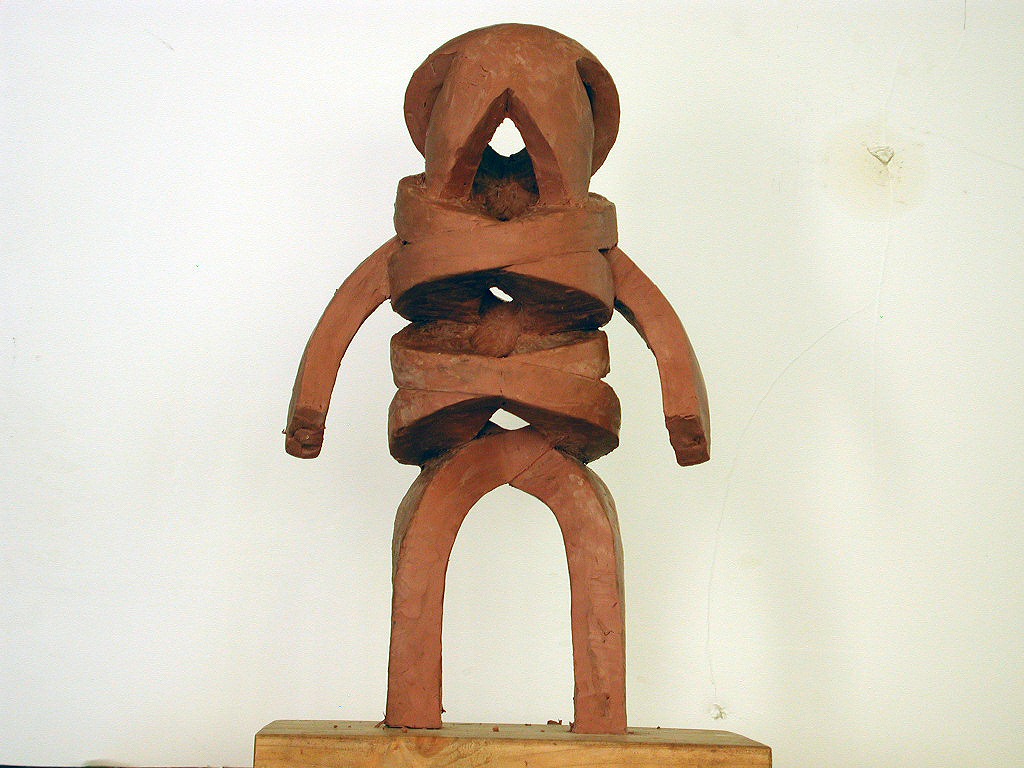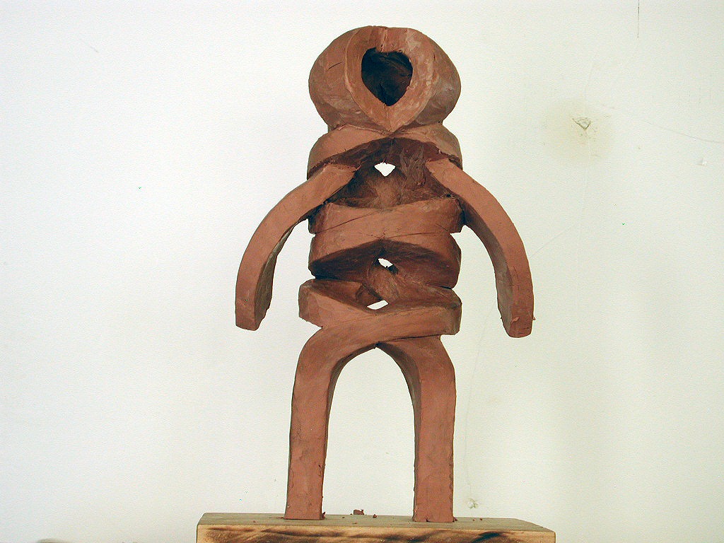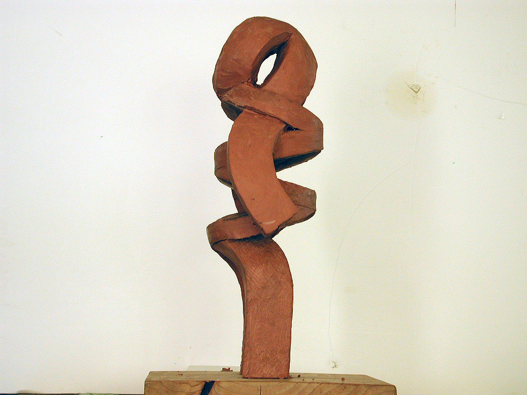 This is all there now. I’ve thickened up the bands, brought the arms in a little, detailed the bands crossings, and trimmed the curves and corners both inside and out. I also tapered the bands from the feet to the hands. The height, volume, and proportion is good. It feels I’ve gone far enough, without overdoing it. I want an organic lyrical feeling overall to this sculpture.