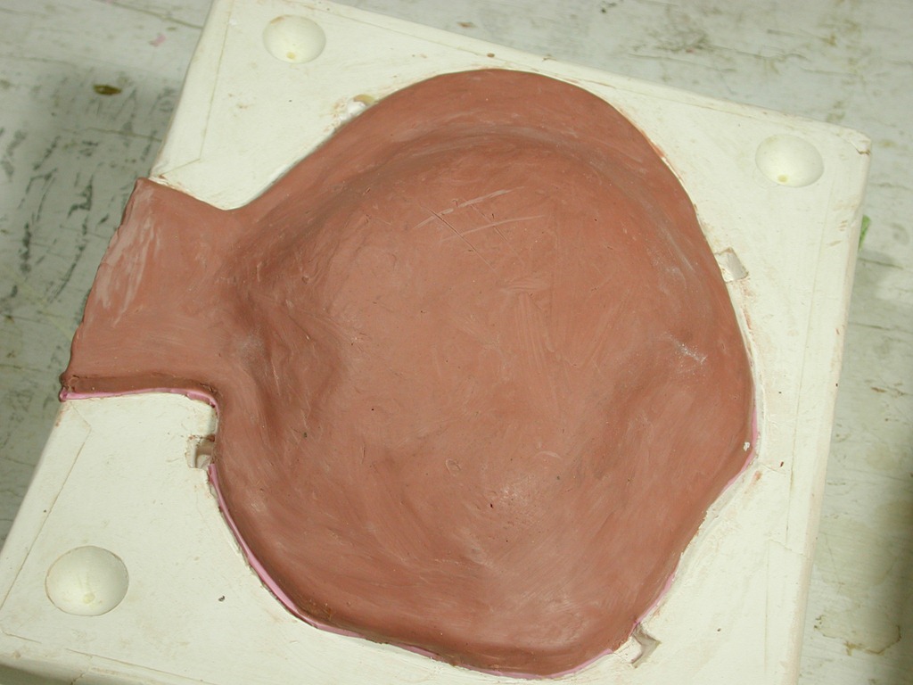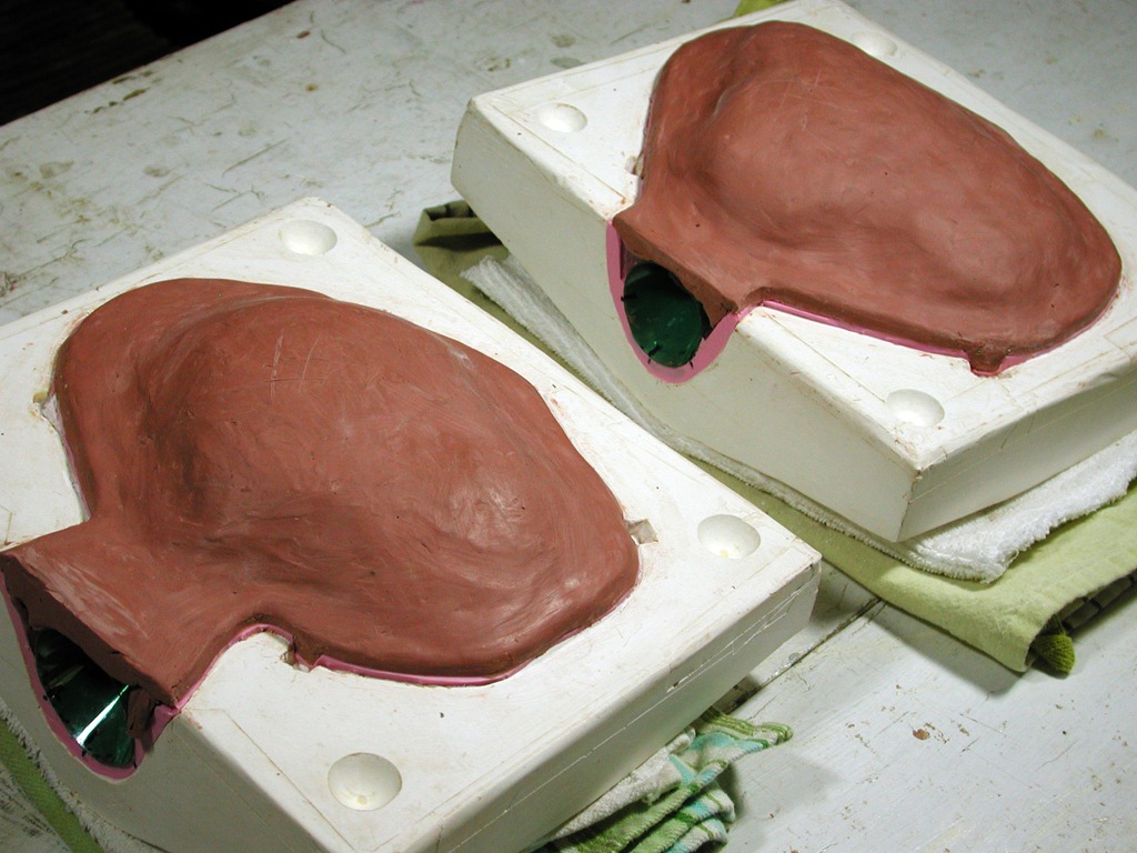 Remove the clay blanket, you’re done with it. Wax the whole surface of the plaster with Briwax, and spray release on it and the first side, and model, &c.