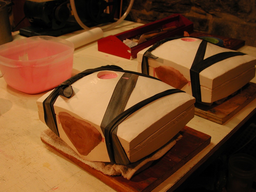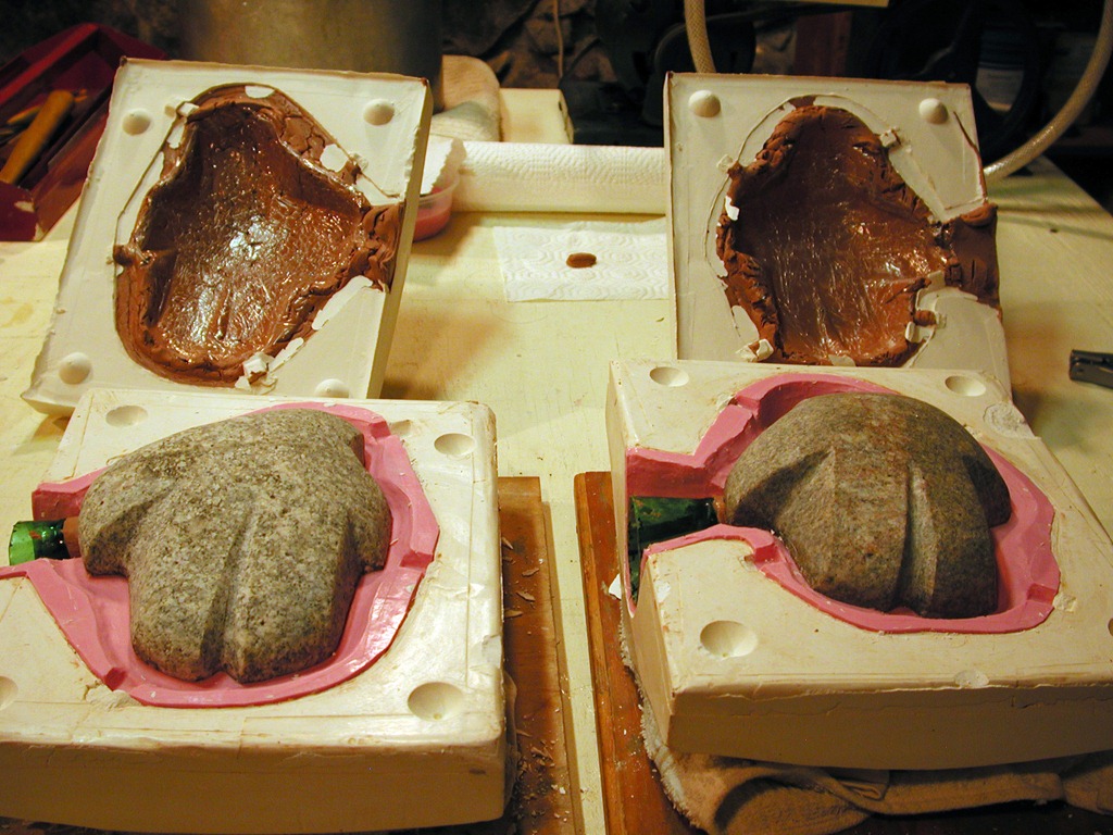 Reassembled molds, ready to be poured with wax, plastic, or cement.