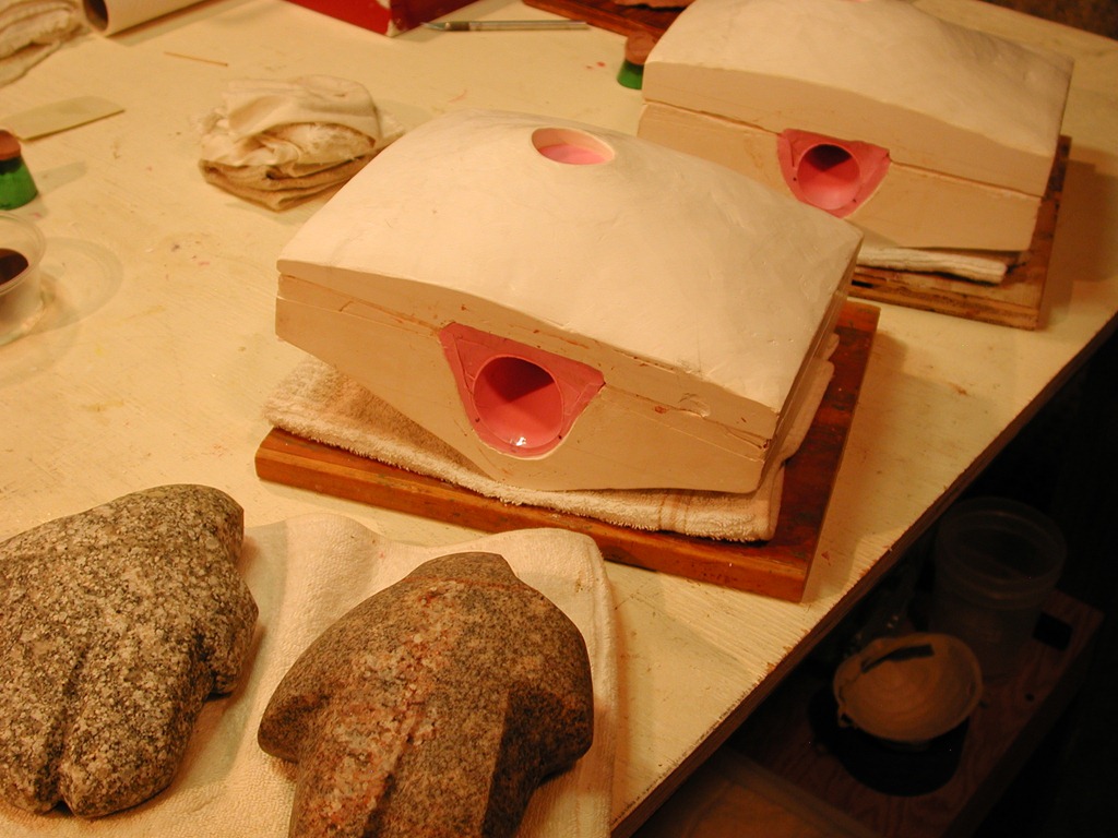 The two molds ready for the 2nd half plaster mother mold to happen.