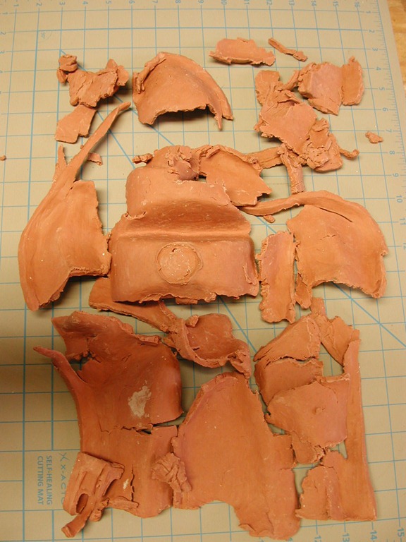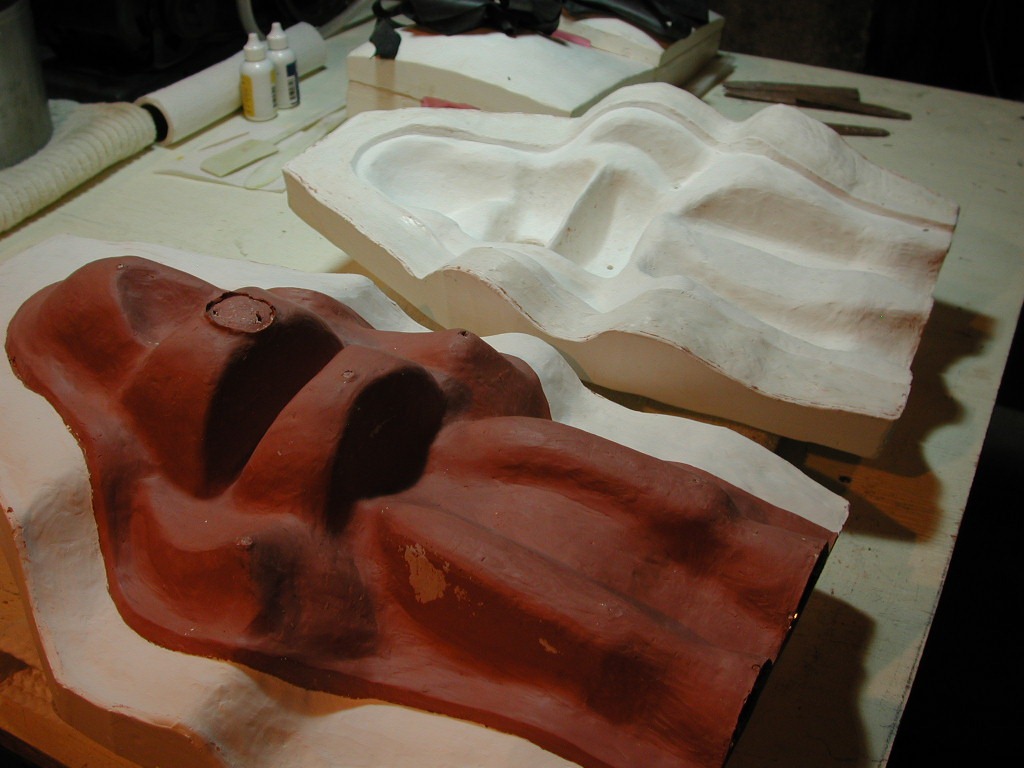 I save the clay blanket that was removed, because I can weigh it and know roughly the amount of silicone rubber I’ll need later to fill the void between where the blanket was removed and the plaster mother mold. We’re some way off from that still.