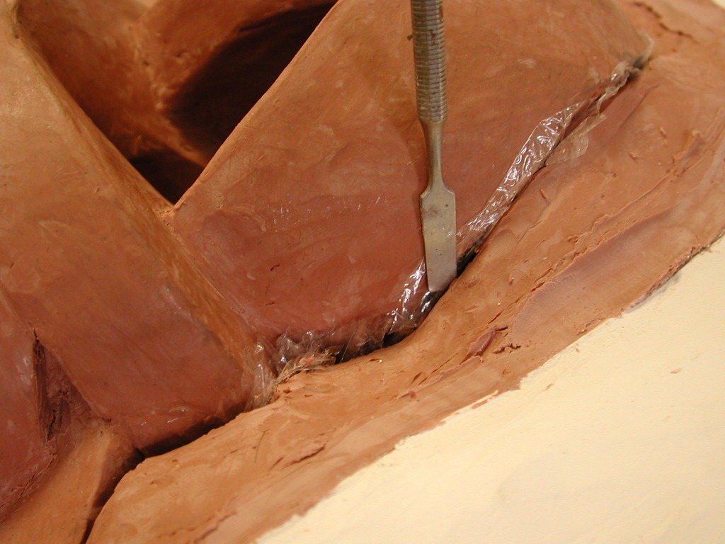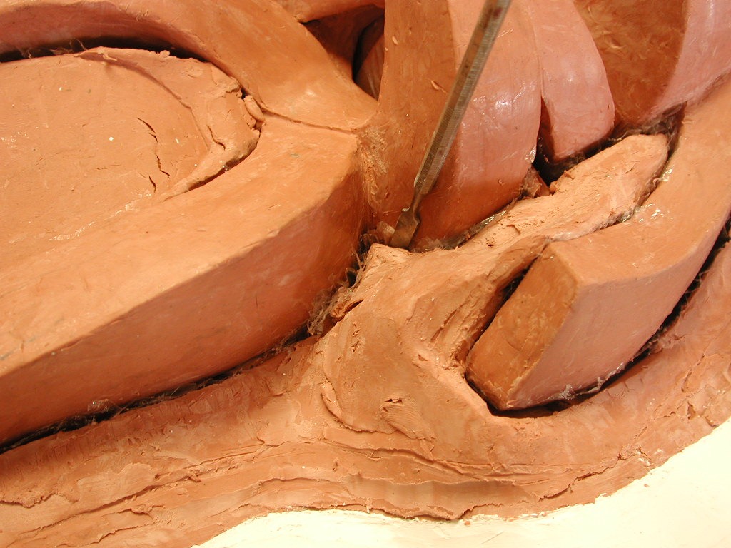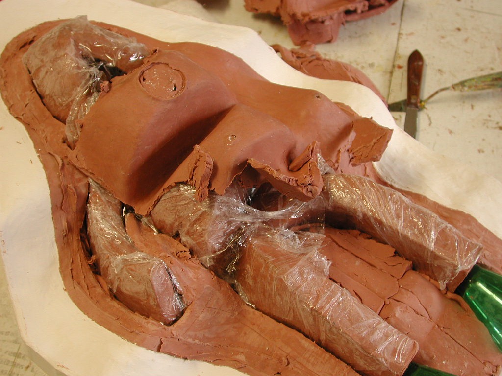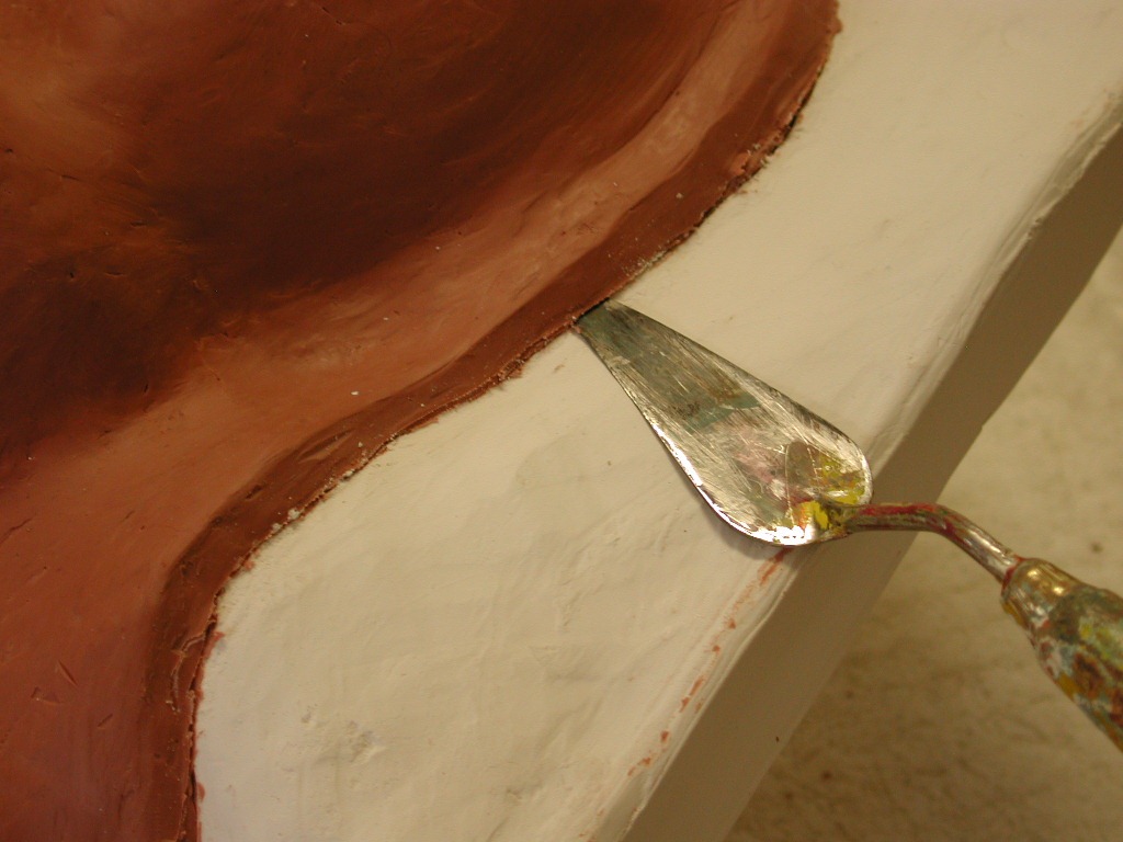 Now I’m going to remove that pretty clay blanket and reveal the model under it. I’ll use a palette knife to cut and separate the blanket from the plaster,