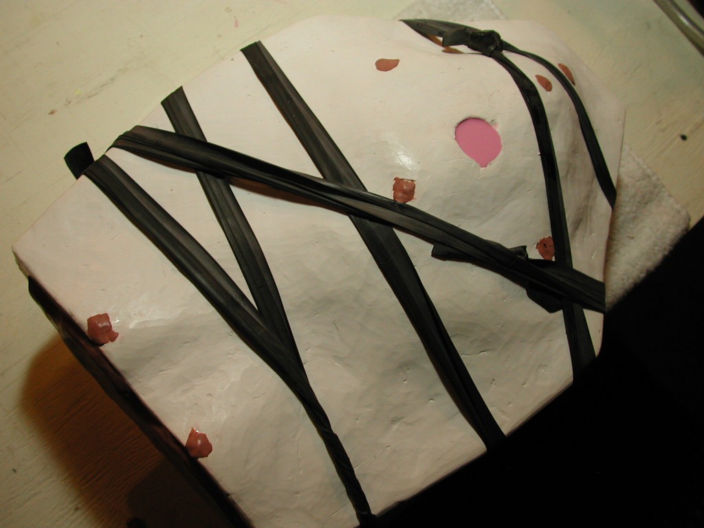 Assemble the plasters, strap it together and again, cover the feet/pour spouts area, sealing it tightly so there will be no leaks.