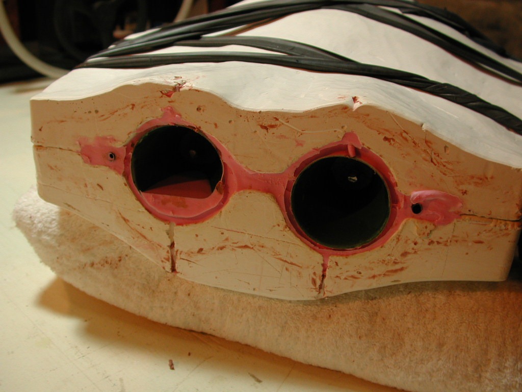 And that box mold I’m doing on the side? I added some pour spouts there too, and applied release. I’ll pour the second half right on top of the first, with whatever’s left over in the bucket from the big mold.
