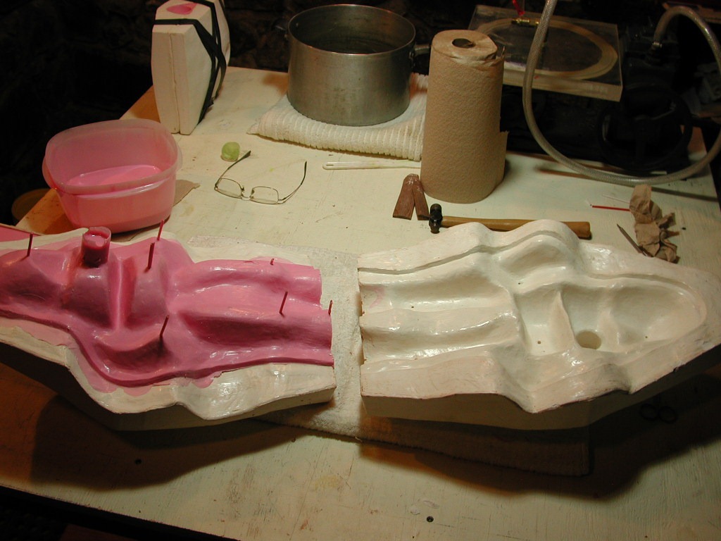 The mold, by chance, opened with the first side facing out. This side hasn’t seen the light before, and it’s our first look at it, but it isn’t the side we just poured. It looks good without any air gaps at the high spots – all the venting worked properly.