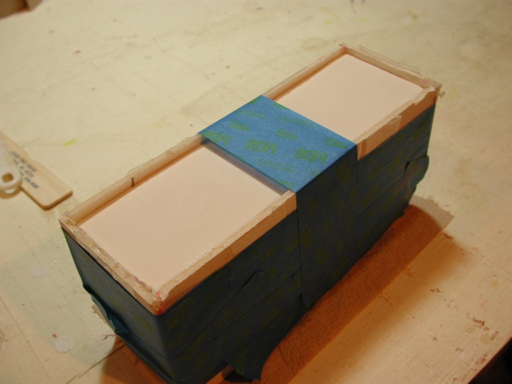 The little block mold of the two head-pieces turned out well. I’d had a brief scare where I doubted if I could definitely recall that I had applied the release or not, but I had, it all came apart just fine. I had poured a plaster top for the mold.
