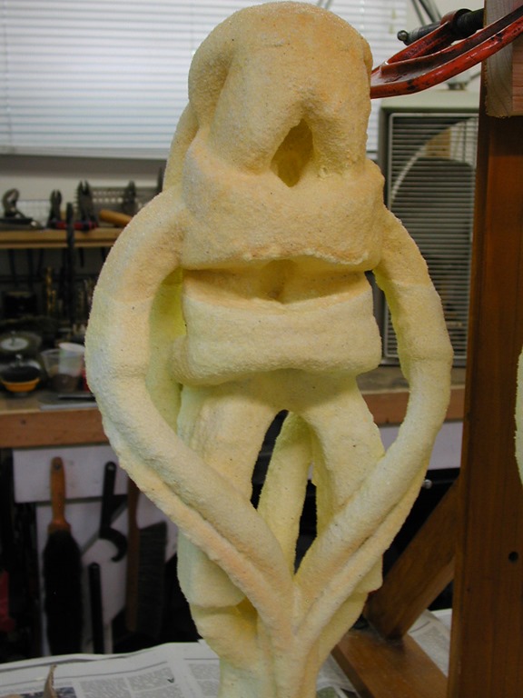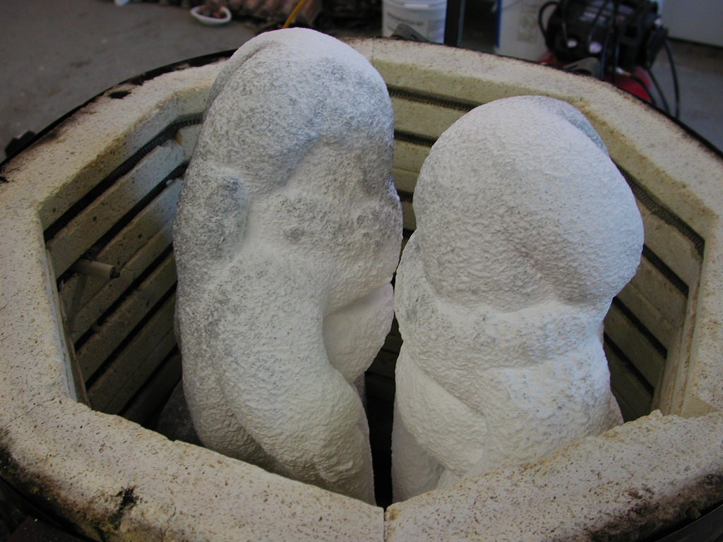 The wax doesn’t just melt out, it actually burns, which assures the mold is completely empty and dry, when the hot bronze is poured in later.  Any combustible material remaining in the mold during the metal pour could cause a dangerous explosion.