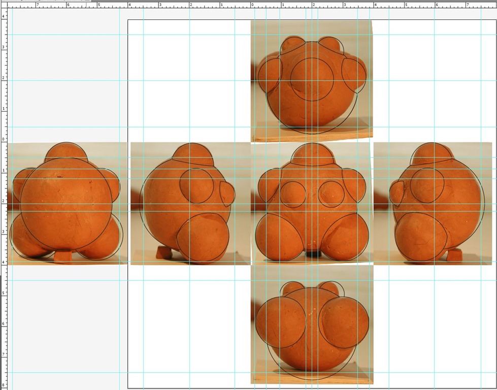Then, lay them out in graphic design software, maybe Illustrator, and set some guidelines across their common points of reference.