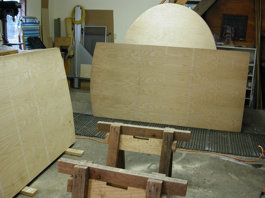 I’m happy to say that Blue Woman will be made of mostly salvaged/recycled material. Passing by my favorite super-secret dumpster, I discovered six full sheets of high quality-finish plywood discarded. Enough for the entire project. This was on the afternoon after I’d committed the entry fee to participate in ArtPrize this year. Believe in Destiny?