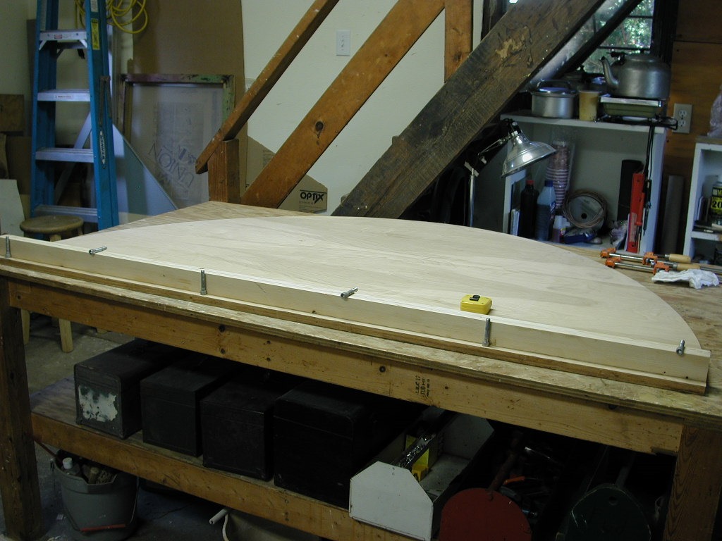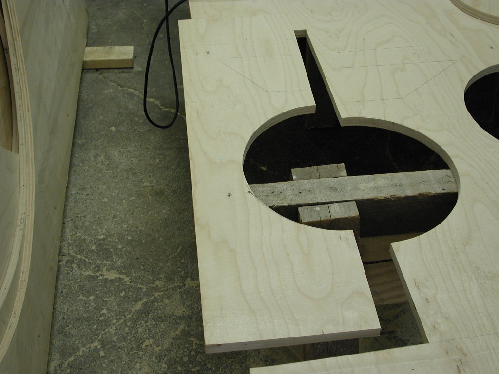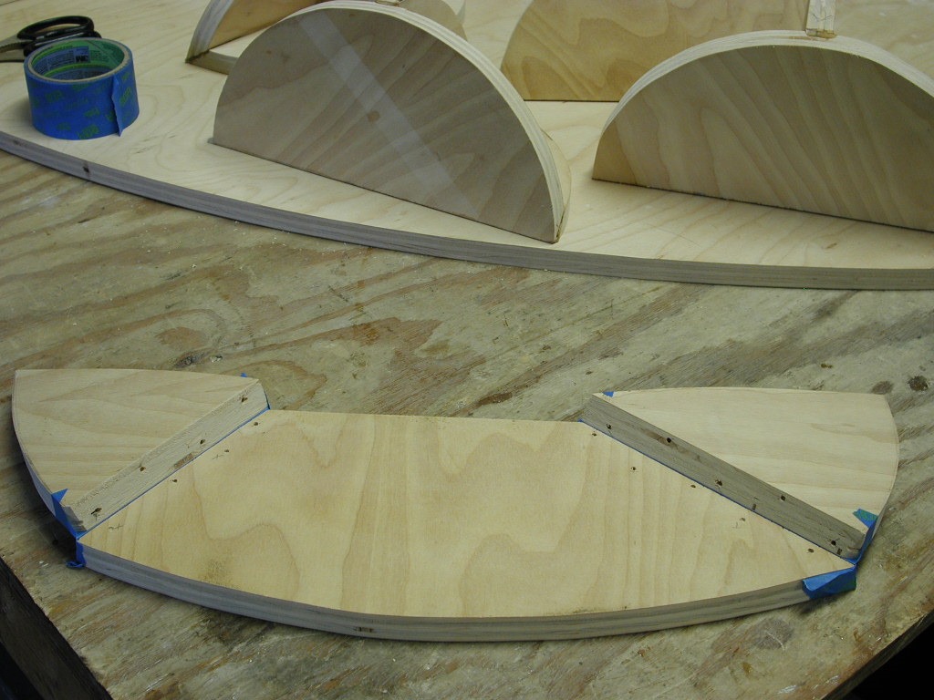 I’ve done a lot of engineering in my head since the last post. I had to understand how to assemble this, whether or not and how it would dis-assemble for transport, what sort of attachment hardware to use, and the devising of support-attachment brackets to hold the sections securely together. As usual, I depend on the advice of a few good friends. One idea offered was that the assembly method should be true to the nature of plywood construction generally, as in furniture for instance, and that the whole thing could be “flat-packed”, disassembled for transportation. Really, it could be no harder to do that than making permanent fixed connections, so I’ll try.
