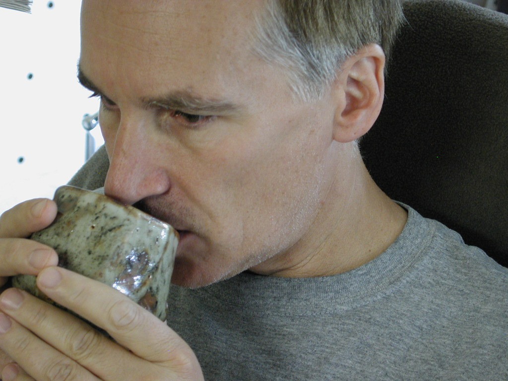 The body is set upon the floor, and the head-piece is clamped into position with the help of a jig to hold it in place while adjustments are made, viewpoints are checked-out, comparisons to the model are referenced, and markings are drawn.
