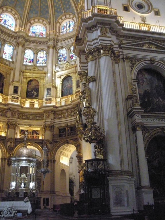I went to Portugal and Spain seeking and expecting to see a lot of decorative art applied to things from chapels to architecture to sculpture and streetscapes; instead what I discovered was something more intense than what I usually thought about decoration; what I’ll call Adornment. I may have thought of decoration as something applied to the surface, over something else, and and hiding, or not fully part of, another thing; an afterthought. Adornment means for me the accumulation of detailed elements into a synergizing aura becoming the object itself; there’s no boundary between the adornment and the object; each single part has adornment included in it.